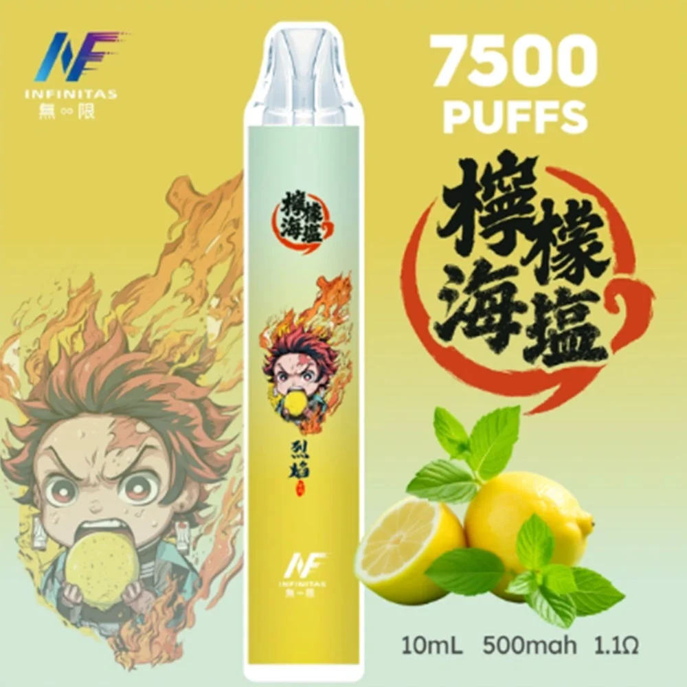 如果你追求长效续航、稳定细雾化口感,同时又是鬼灭之刃动漫迷,INF 7500 Puffs 抛弃式电子烟绝对是必收之选。高口数、大容量烟油、潮流联名设计,带来极致蒸汽体验与收藏价值,让每一次吸入都成为享受与潮流的完美结合。