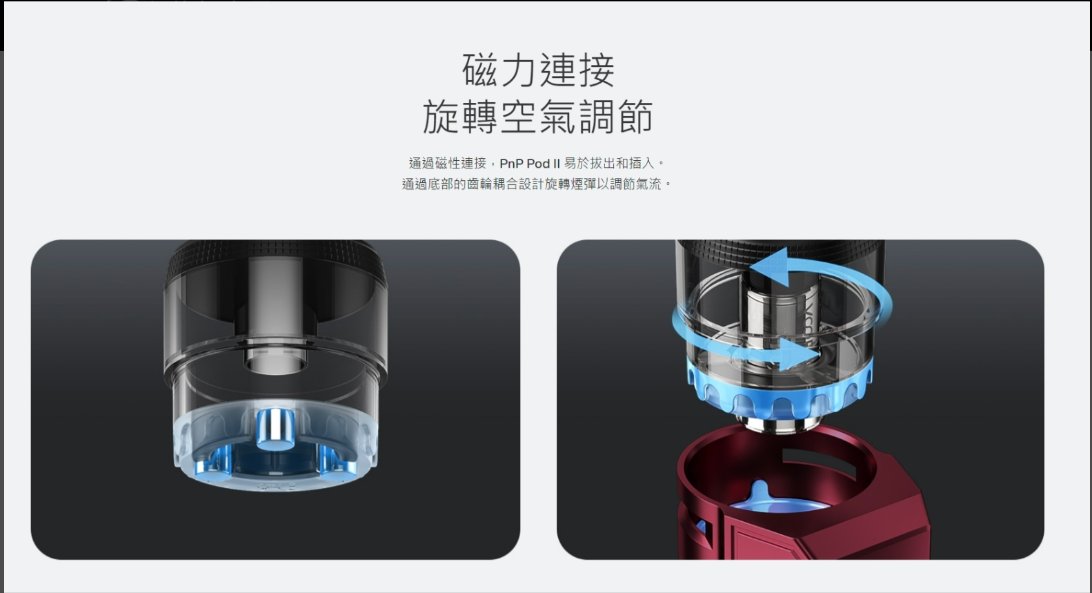 支援全系列 PnP 系列霧化芯,無論是想追求濃郁還是柔和煙感,輕鬆切換芯體即可改變吸感,高度自由!